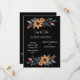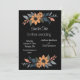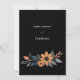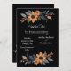 El diseño de esta tarjeta boda muestra una encantadora disposición floral con girasoles y follaje complementario, todo con un elegante fondo negro. El diseño se divide en dos grupos, uno en la parte superior y otro en la parte inferior, creando un marco equilibrado para el texto central. Los girasoles, con sus cálidos pétalos naranjas y centros oscuros, están rodeados de hojas azules y grises mullidas, con acentos de melocotón suave, que le dan un toque de elegancia rústica. La estética general combina la sofisticación moderna con la belleza natural, lo que la convierte en una elección ideal para un boda de temática contemporánea y terrenal. Personalice la tarjeta con sus nombres y detalles del boda. Puedes descargar la tarjeta en tu equipo móvil o computadora. Tarjeta creada con ayuda de ai.