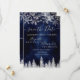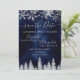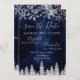 Es hora de celebrar su boda invernal maravilloso con este lujoso purpurina de copas de nieve brillan y el purpurina plateado del bosque de pinos en un elegante fondo de color azul marino, con una moderna tipografía de escritura fría. Una moda y una elegante boda ahorran la tarjeta de cita.