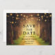 Tarjeta de Anuncio de Compromiso de Boda de Luces de Cadena de Camino del Bosque Rústico