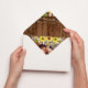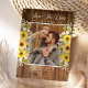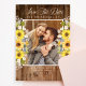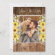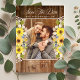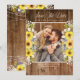 Tarjeta de Luces de Cadena de Girasoles Rústicos Foto Save The Date. Hermosos girasoles campestres de acuarela, luces de cadena, sobre un fondo de madera rústica. Personalice este diseño personalizado con su propia foto y detalles.