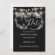 Una elegante tarjeta blanca y negra de última generación con luces de cuerda de bonito y delicados ilustraciones florales sobre un fondo negro. Personalice su información especial de guardar la fecha. Diseñado por Thisisnotme©