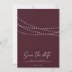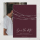Luces de Cadenas Modernas Mínimas Foto Guardar Fecha - Diseño moderno minimalista con luces de cadena parpadeantes, hermosa letra de caligrafía moderna y tu foto hermosa. Se muestra en burgundy, pero estará disponible en otros colores populares. También puedes cambiar fácilmente el color de fondo para coordinar con tu tema de color. * También disponible como descarga digital.