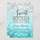 Sweet 16 Birthday Party Silver Purpurina alumbrado Verde azulado "Save the Date" plantilla de invitación con dirección fiesta y detalles RSVP.