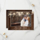 De este modo, la tarjeta de fecha guarda un fondo rústico de madera y luces de cuerda que también permite una foto. Dé a sus huéspedes la sensación de su granero, condado, boda de estilo vinícola con esta tarjeta.