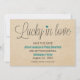 Anuncio divertido y encantador de Lucky in Love Save the Date con un diseño de tipografía caprichosa acentuado con pequeños corazones de color azul turquesa y un fondo de papel texturizado falso. Esta invitación chic para guardar la fecha es perfecta para anunciar su boda con estilo moderno. Fácil de personalizar, simplemente agregue los detalles de su día especial en los campos proporcionados. Haga clic en el botón "Personalizar" para encontrar opciones de personalización adicionales.