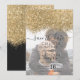 La elegante, glamorosa y moderna tarjeta de guardar fecha de boda con foto es perfecta para la pareja comprometida contemporánea y elegante. Cuenta con un bloque de color con brillo dorado impreso falso y confeti con purpurina sobre un fondo negro simple. La parte posterior muestra el mismo brillo pero en un panel más grueso. Este diseño chic, lujoso y único será un éxito con todos sus invitados. **¡Agregue su propia foto!**
