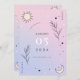 Sorprende a tus seres queridos con esta tarjeta de Save the Date mística celestial, con fondo degradado rosa y púrpura, ilustración de luna y estrellas y detalles editables. Personalízala fácilmente haciendo clic en la opción "personalizar".