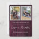 Anuncia la fecha de tu boda a amigos y familiares con esta sencilla y elegante Magenta Simple Rústico Foto Guardar la Fecha. El diseño del anuncio presenta un fondo de madera rico y espacios para tres fotos de la feliz pareja completadas con un diseño de texto moderno.