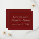 Un hermoso e impresionante ahorro de la tarjeta de fecha, este diseño retrata un fondo rojo con un tipo de letra gris, ahorra la fecha de su boda con estas encantadoras invitaciones. Usando plantillas fáciles de usar, personaliza la tuya hoy!