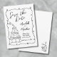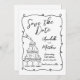 Marco giratorio giratorio de mano Dibujo divertido Guardar la tarjeta de fecha. Esta original y creativa tarjeta de fecha ahorrada es perfecta para parejas que buscan un tono lúdico y alegre para su próximo boda. Diseñada en blanco y negro clásico, la tarjeta muestra un marco giratorio con encantadores detalles cardíacos que rodean la información de su boda, presentada en una deliciosa mezcla de guiones y tipos de letra manuscritos para un ambiente informal y elegante. En la esquina inferior izquierda, un divertido ilustracion de una torre de cristal de champán con una botella de champán rota por la parte superior y le da un toque alegre y de celebración. Este detalle peculiar se combina a la perfección con el marco giratorio para crear un diseño único e inolvidable. La parte trasera de la tarjeta tiene un acento dulce, un monograma manuscrito de las iniciales de la pareja acompañado por un encantador boceto de una botella de champán y de un vaso de vidrio, vinculando el tema. El diseño, totalmente personalizable, es perfecto para las parejas que desean algo de moda, de diseño y lleno de personalidad. Disponible en versión impresa o como archivo digital descargable para compartir o imprimir fácilmente.