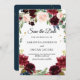 Reserva La Fecha Marco de flores rojas y azul marino burgundy rústi