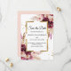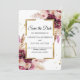 Reserva La Fecha Marco de flores rosadas de Burdeos moderno y dorad