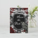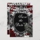 Ornate Silver Frame, Crow y String Lights on Red and Black Background Gótico Guardar Invitaciones de Boda de fecha ^