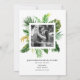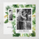 Anuncia la fecha de tu boda con esta tarjeta plana de guardar la fecha tropical. Cuenta con ilustraciones en acuarela de hojas de palma, hojas de plátano, monsteras y helechos. Esta tarjeta de anuncio de guardar la fecha de la boda es perfecta para bodas tropicales y de verano y otros eventos. Personaliza añadiendo nombres, fotos y mensaje.