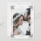Una plantilla de fotografía limpia, moderna y con estilo orientado verticalmente tiene adornos de esquina ornamentados y flores alineadas a su alrededor que forman un marco limpio y elegante. La parte de atrás tiene un lujoso texto en negrita de caligrafía que dice, salvo la fecha. Hay plantillas tanto en el frente como en el reverso para su redacción personalizada. Reemplace la fotografía por la suya propia y envíela a los huéspedes para asegurarse de que asisten a su boda especial en la fecha que usted elija.