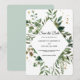 Anuncia tu próxima celebración con esta elegante tarjeta de Save the Date de Vegetación, que presenta un diseño sofisticado en forma de diamante rodeado de hojas de acuarela pintadas a mano y detalles de speckles dorados. Este diseño elegante es perfecto para bodas botánicas, rústicas, de jardín y modernas. Totalmente personalizable con nombres, fecha y ubicación para un toque personal.