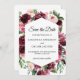 Fije el tono para su elegante boda con esta Romántica floral roja Guardar la tarjeta de fecha. Con una rica acuarela de color burdeos, rubia y rojo que rodea un diseño hexagonal limpio, este diseño combina el encanto atemporal con un estilo moderno. Ideal para bodas en otoño, invierno o románticas en el jardín. Personalizable completo para ajustar los detalles de su boda.