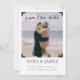 Moderno guarde la tarjeta de fecha con su foto favorita en un fotograma con los detalles de su fiesta en letra moderna. la tarjeta se puede personalizar fácilmente para cualquier evento añadiendo los detalles del evento, el estilo de fuente, el tamaño y color de la fuente y la redacción de su elección haciendo clic en el botón "Personalizar".