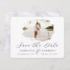 Marco romano violeta morado y blanco con Moda fotográfica Guardar las tarjetas de fecha. Con una textura de mármol de lujo atrás, elegante caligrafía Fuente de escritura más un serif de línea delgada! ¡Edite hoy el suyo con sus nombres, fecha y foto! ~ Revisa mi tienda para ver toda la suite boda para este diseño!