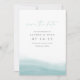 Elegante boda costera, salvo la fecha, presenta un gradiente acuático azul-verde a lo largo del fondo con una grácil curva que evoca el flujo y el flujo del mar. Los detalles de su boda aparecen en letras clásicas minimalistas con acentos manuscritos. Use la parte posterior para compartir información adicional con sus invitados.