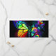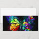 Arcoiris, mariposa monarca luminosa, pintada de forma artística con ramo de iridiscente, rosas brillantes y luminiscentes sobre fondo negro. Mariposa arcoiris.