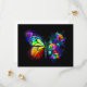 Arcoiris, mariposa monarca luminosa, pintada de forma artística con ramo de iridiscente, rosas brillantes y luminiscentes sobre fondo negro. Mariposa arcoiris.