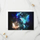Fabuloso, brillante, azul y amarillo, mariposa nocturna sobre fondo oscuro.