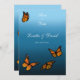Elegantes mariposas monarca en naranja sobre un fondo ómbre azul, creando un diseño romántico e inspirado en la naturaleza. Perfecto para bodas al aire libre, de jardín o con tema de mariposas.
