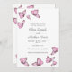 Tarjeta de Save the Date moderna con mariposas rosadas tropicales en acuarela para una boda de verano romántica. Esta plantilla está preparada para que la modifiques con tus detalles.