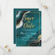 Establezca un tono sofisticado para su boda con esta lujosa invitación de "Save the Date", que presenta un patrón dramático de remolino de mármol en rico color turquesa. El diseño está elegantemente realzado con venas brillantes de purpurina dorada y un icono de corazón brillante a juego.