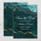 Tarjeta de aviso de boda de geoda de mármol de aguamarina y dorado en acuarela de estilo elegante moderno