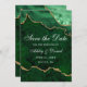 Tarjeta de Guardar la Fecha de Geoda de Ágata de Mármol Verde Esmeralda y Oro Acuarela Moderna y Elegante
