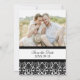 Foto personalizado boda guardar la tarjeta de anuncio de fecha con elegante y contemporáneo color negro y blanco romántico patrón de damasco vintage floral floral. Personalizable con los detalles de su boda y su propia foto, disponibles en una amplia gama de productos bodas a juego. Contáctenos para solicitar un cambio de color o un producto personalizado.