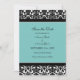 Foto de personalizado boda guardar la tarjeta de anuncio de fecha con elegante y vibrante patrón de damasco floral moderno azul turquesa, negro y blanco. Personalizable con los detalles de su boda y su propia foto, disponibles en una amplia gama de productos bodas a juego. Contáctenos para solicitar un cambio de color o un producto personalizado.