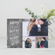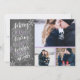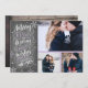 Vacaciones Guardar La Tarjeta De Fecha. Esta moderna y moda tarjeta fotográfica de vacaciones se utiliza para salvar la tarjeta de cita de la pareja recién contratada. En la parte delantera se muestran 3 fotos acentuadas por copos de nieve a mano y tipografía con letras a mano que dice "Besos de mora y cálidos deseos de vacaciones de pronto ser señor y señora" con toques de lila y fondo de pizarra. El reverso se duplica para salvar el anuncio de la fecha con una foto completa y tus detalles, o simplemente eliminar y simplemente tener una foto.