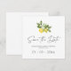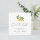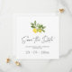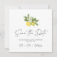 Tarjeta de Ahorra la Fecha de Limón Verde Minimalista - Anuncia tu gran día con esta tarjeta de ahorrar la fecha minimalista que presenta una delicada ilustración de limón y verde. El diseño limpio y la paleta de colores suaves la hacen perfecta para bodas mediterráneas, de verano o de jardín al aire libre.