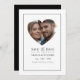 This minimalist black and white wedding save the date card features a refined serif and script typography combination with a thin border for a timeless touch. The elegant yet simple layout makes it perfect for modern, classic, and formal weddings. A convenient QR code on the back directs guests to the couple’s wedding website for more details. Easily personalize with your wedding information and photo for a beautifully understated and stylish announcement.
