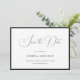 Announce your special day with understated elegance using this minimalist script design accented by a refined black border. Featuring graceful calligraphy paired with clean, balanced typography, this layout offers a timeless and sophisticated look that never goes out of style. The crisp monochrome palette creates a polished presentation while keeping the focus on your names and wedding details. Perfect for couples who love classic minimalism and modern luxury, this design is fully customizable to reflect your celebration with clarity and grace.