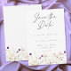This minimalist wildflower romantic botanical wedding save the date design features delicate florals, soft neutral tones, and elegant typography. Perfect for couples seeking a timeless, romantic style, it offers a refined, modern look that elevates your wedding aesthetic. Created by Simply Farmhouse Press.