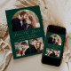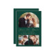 Esta sencilla y minimalista tarjeta Save the Date incluye un arco de fotos personalizado encima de las palabras "Save the Date" en un elegante guión de escritura a mano de color dorado, seguido por los nombres de la pareja, la fecha boda y la ciudad en letra sans serif en un fondo verde esmeralda. Dos fotos cuadradas más pequeñas aparecen en la parte inferior de la tarjeta. Añadir un mensaje más detallado con información adicional en la parte posterior.