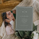 Estas elegantes tarjetas de aviso de boda modernas y minimalistas presentan un diseño de texto simple en verde salvia y blanco, con un marco clásico en el borde. Agrega tus iniciales o monograma para hacerlas completamente tuyas y añade tu foto personal favorita en la parte posterior.