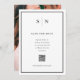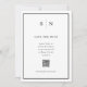 Estas elegantes y modernas tarjetas de fecha incluyen un sencillo diseño de texto minimalista en blanco y negro, con un marco clásico en el borde y un punto para añadir tu código QR donde tus huéspedes pueden encontrar más detalles bodas. Añade tus iniciales o monogramas para hacerlos completamente suyos, y agrega tu foto personal favorita a la parte posterior.