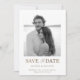 Le encantará esta exclusiva y elegante tarjeta de fecha, que incluye una foto clásica en blanco y negro enmarcada por un fondo blanco resplandeciente. El texto "Save the Date" se destaca en lujoso oro metálico falso, añadiendo un toque de sofisticación y elegancia al diseño. Perfecto para las parejas que buscan una estética atemporal y moderna, esta tarjeta es fácilmente personalizable con tus fotos y detalles bodas, lo que lo convierte en un recuerdo memorable para tus invitados.