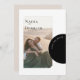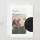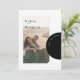 Un círculo simple con texto curvo se solapa con los detalles del boda en caja.