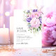 Elegante y moda acuarela de diseño de peones florales Wedding SAVE THE DATE. Púrpura, lavanda suave, tonos violeta, acuarela de color rosa rosa y agua y lavado. En cualquier época del año, perfecto para la temporada de boda de verano de primavera. Plantillas fáciles de editar. Ver colección coincidente 'KIMBERLY'