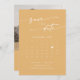 Este boho moda amarillo marigold calendario de fotos de código QR guardar la tarjeta de fecha es perfecto para un boda minimalista. El diseño bohemio moderno, audaz y amarillo brillante, presenta una caligrafía rústica sencilla con un estilo único y clásico. Personalice su fecha de guardar con el calendario del mes de su boda con un corazón sobre la fecha de su boda, sus nombres, ubicación del boda, una foto de compromiso y un código QR que enlaza a su sitio web de bodas.