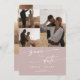 Este código QR rosa polvoriento de moda boho multifoto color rosa ahorra la tarjeta de fecha es perfecta para un boda minimalista. El diseño bohemiano moderno de color rosa ocre y rosa neutro presenta una caligrafía rústica sencilla con un estilo único y clásico. Personalice la fecha guardada con sus nombres, fecha de boda, ubicación, 4 fotos de compromiso y un código QR que enlaza a su sitio web boda.