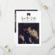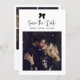 Esta elegante y moda boda en blanco y negro salva la tarjeta de fecha con un guión moderno y caprichoso. En la parte delantera encontrarás una coqueta negra de moda y tu foto favorita de parejas. En la parte trasera hay una rejilla de fotos con espacio para cuatro fotos más personales, y también hay un código QR que los huéspedes pueden escanear para visitar la página web de su boda. Se pueden cambiar todos los colores, incluyendo el arco y el guión.