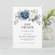 Una boda floral azul y turbia salva la carta de fecha con un elegante ramo de azul marino, azul real , blanco , dorado, marfil de champán, rosa de color rubor , brotes de flores de ranunculus y hojas de eucalipto verde salado y un elegante boquete acuarela. Comuníquese conmigo para obtener ayuda sobre la personalización o si necesita cualquier otro producto con este diseño.