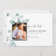 Anuncie su día especial con estas elegantes tarjetas Save the Date que incluyen una imagen de eucalipto acuarela y un marcador de posición para su foto. Otros artículos de coordinación disponibles en nuestro Silver Dollar Eucalyptus Boda Stationery Suite.